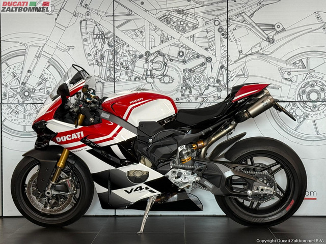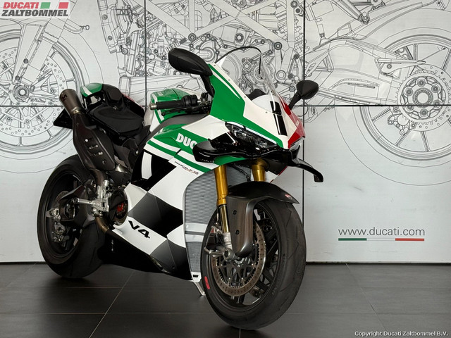 Geproduceerd in een serie van slechts 1000 stuks, is deze exclusieve versie een eerbetoon aan de Ducati geschiedenis en zit vol met opvallende technische oplossingen zoals carbon velgen en het raceklare Brembo remsysteem. Elke nieuwe generatie Ducati Superbike heeft zijn eigen speciale eerbetoon, een centraal thema dat verleden en toekomst met elkaar verbindt en dat wordt belichaamd in deze Tricolore, een pure expressie van Italiaanse uitmuntendheid. En dit exemplaar is dan ook nog eens voorzien van het hoge Akrapovic complete uitlaat systeem om hem echt helemaal af te maken.